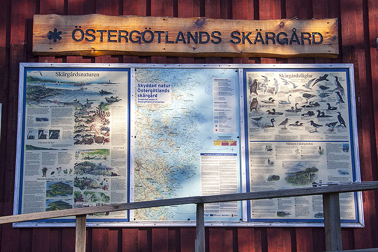 Skylten "Skyddad natur Östergötlands skärgård", beställd av Länstyrelsen Östergötland.
