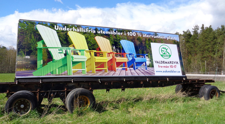 Banderoll för E&K Möbler utmed Europaväg 22. Att synas och bli sedd med fokus på företagets huvudsakliga produkt.