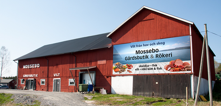 Mossebo Gårdsbutik & Rökeri ligger invid den trafikerade E22. En rejäl vepa lockar trafikanterna att besöka gårdsbutiken.